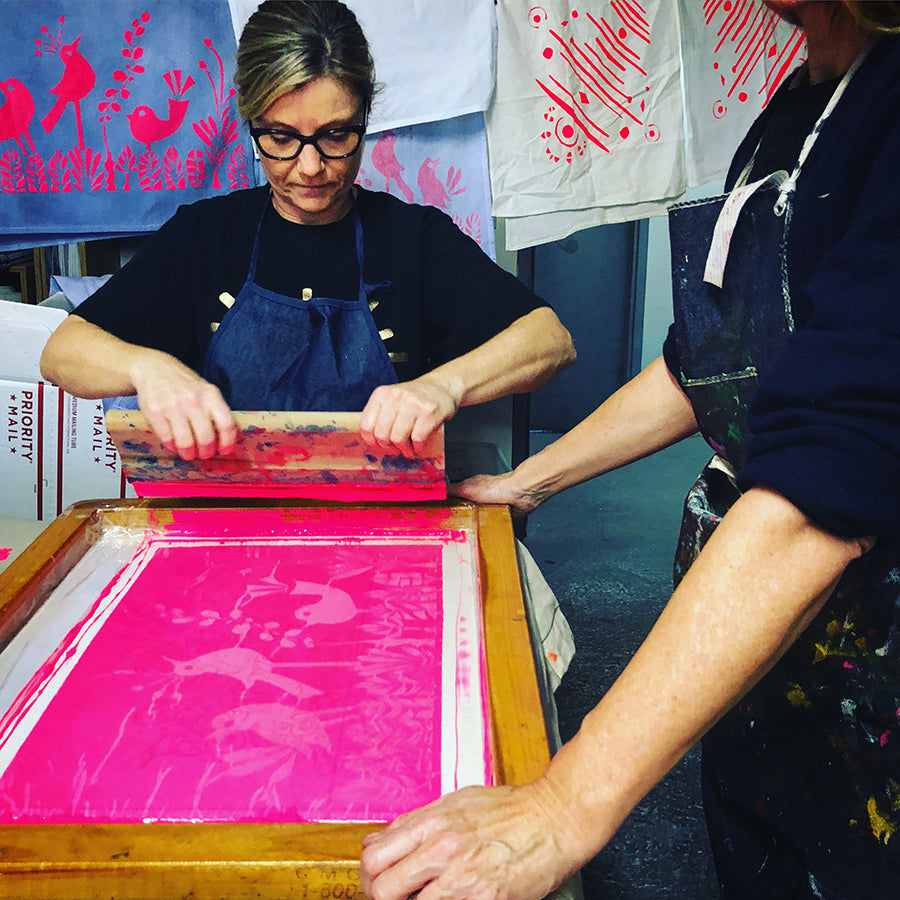 We begin with a demo/ intro to screen printing with paper stencils. Then we explore imagery and ideas with drawing and out of these graphics we will come up with a design for your printable items.